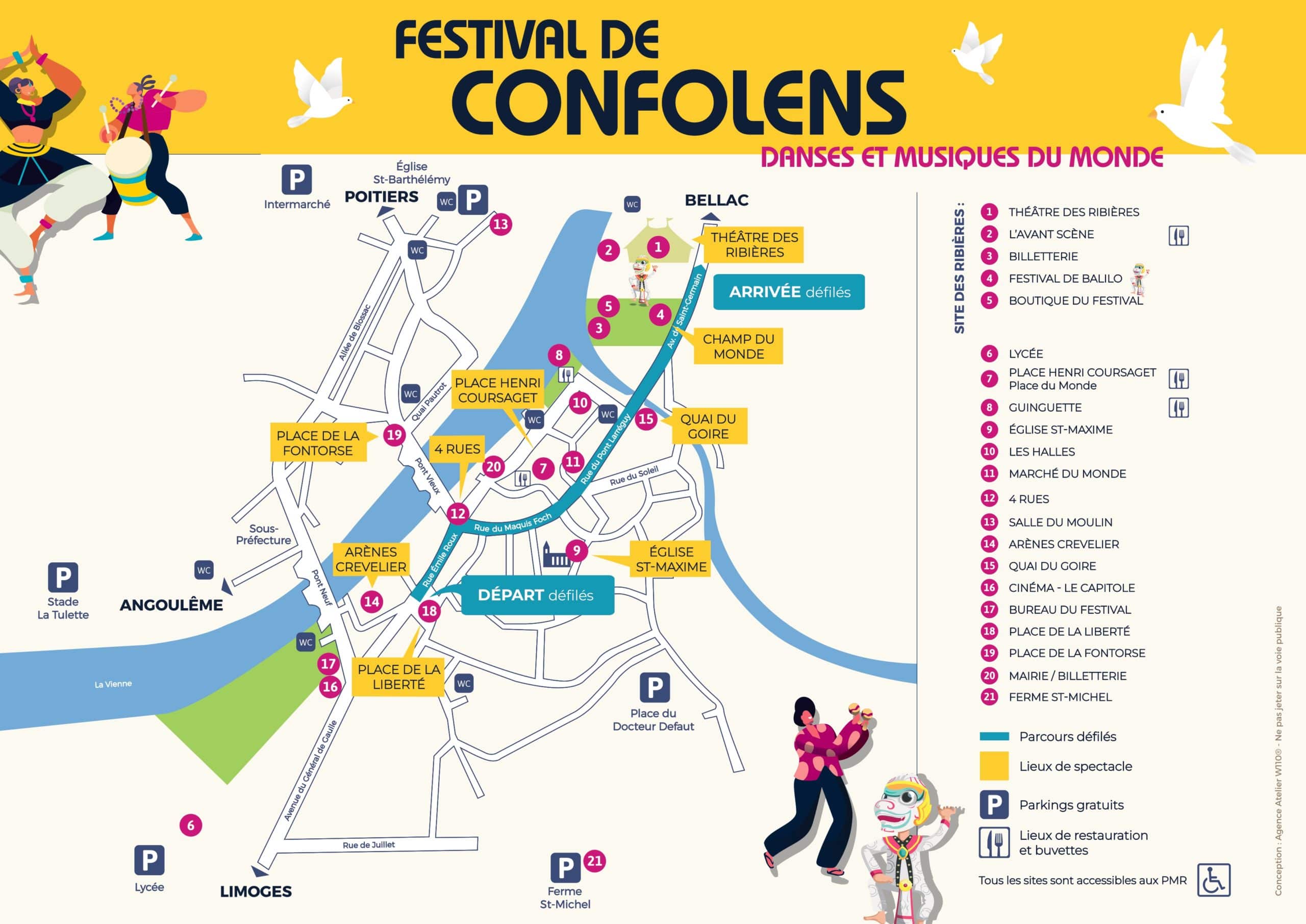 Pendant le festival, les visiteurs disposent de plusieurs parkings gratuits aux différentes entrées principales de Confolens.