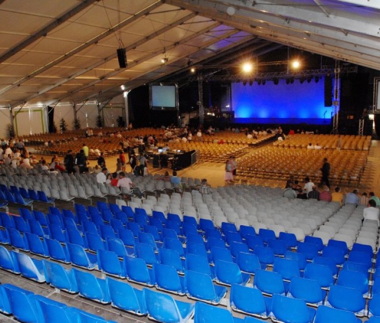 Cette salle d’une capacité de 2500 places assises et pourvue d’une surface scénique de 200 m2, bâtie de toutes pièces pour le festival, apporte tout le confort au public avec un placement en gradins ou sur des chaises. Une emplacement est également disponible pour les personnes à mobilité réduite. Cet espace permet aux artistes et à l’équipe technique d’assurer et d’enchaîner des spectacles de très haute qualité.